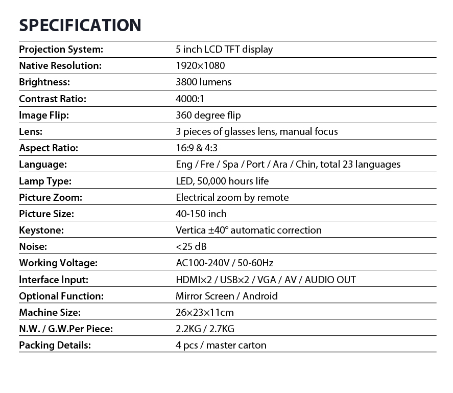 Auto Focus & Auto Keystone Projector