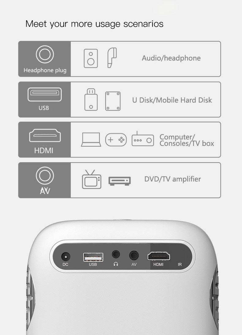 Ports: HDMI / USB / AV / AUDIO OUT