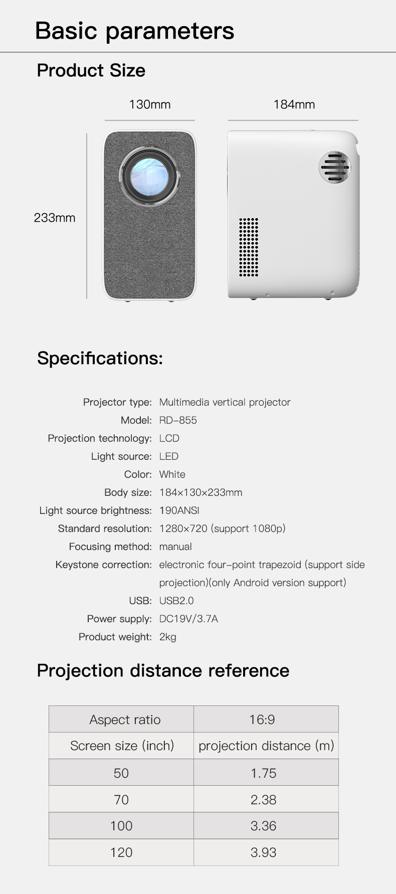 Native Resolution: 1280x720, support 1080P